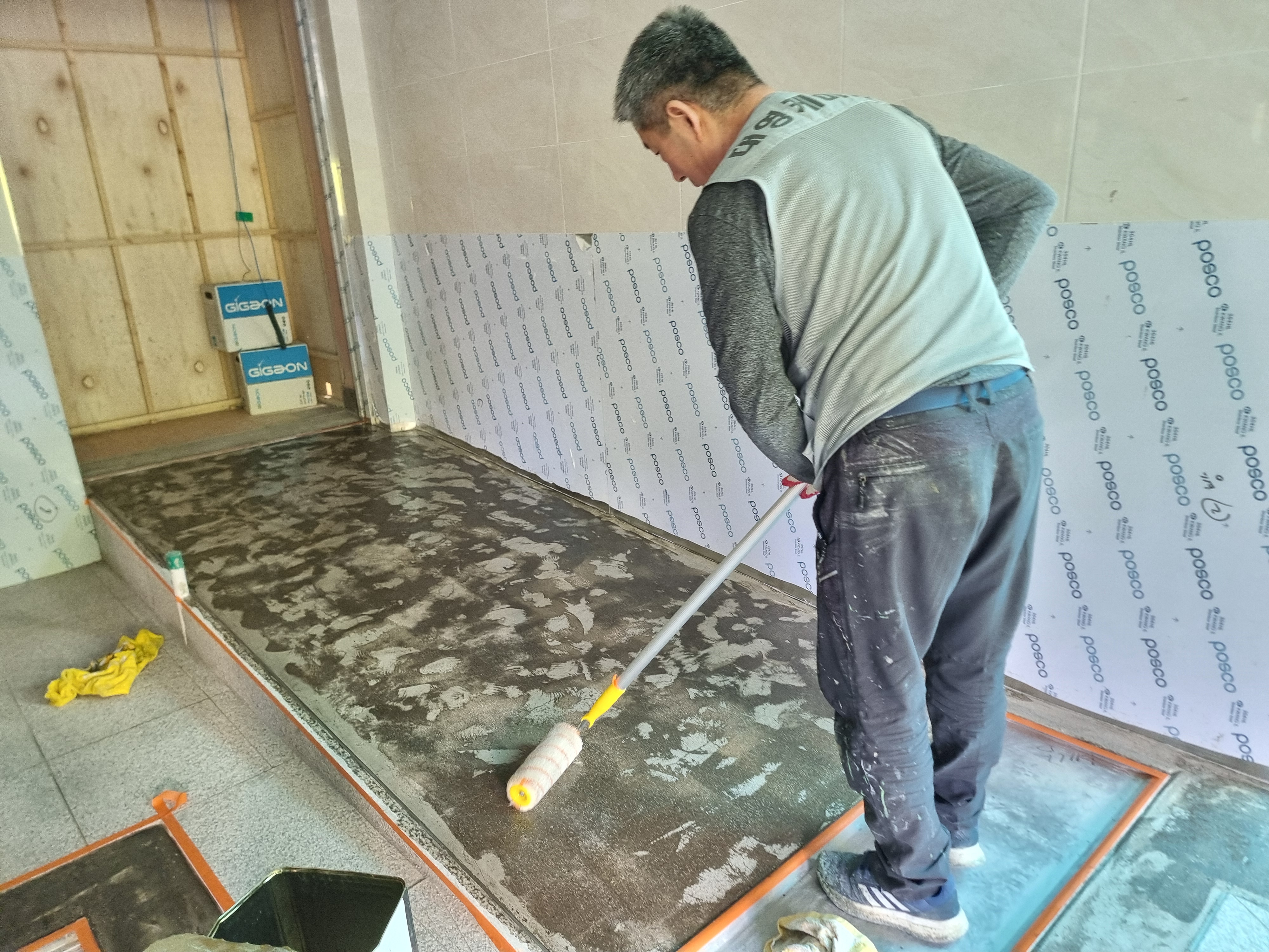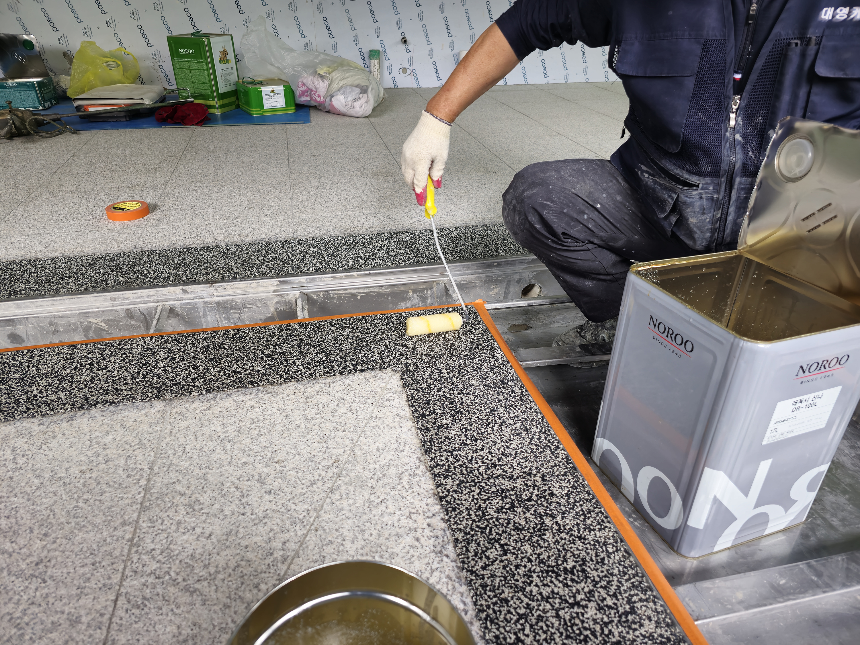 미장양생후 에폭시레진을 3회 기공충진 합니다.