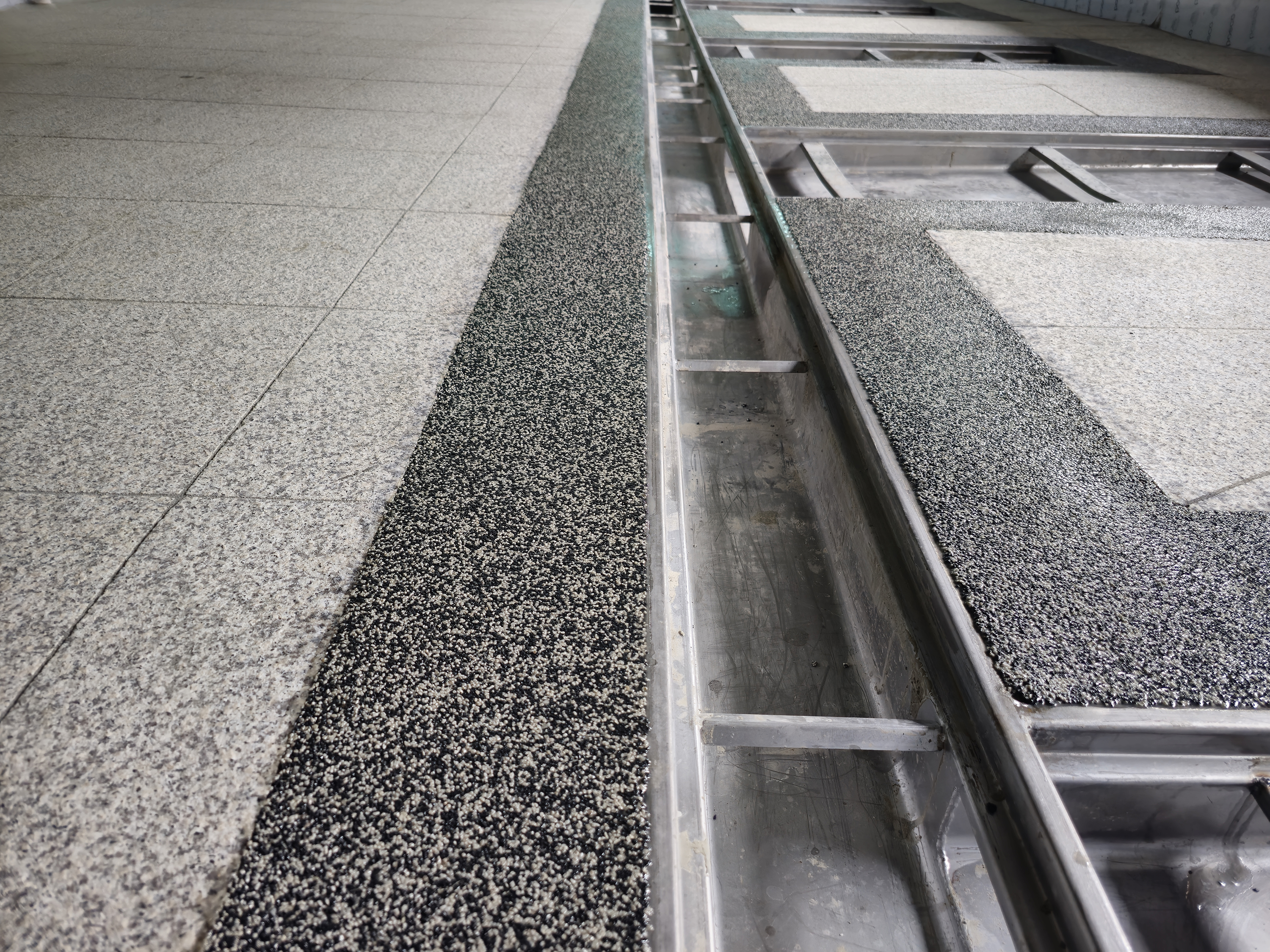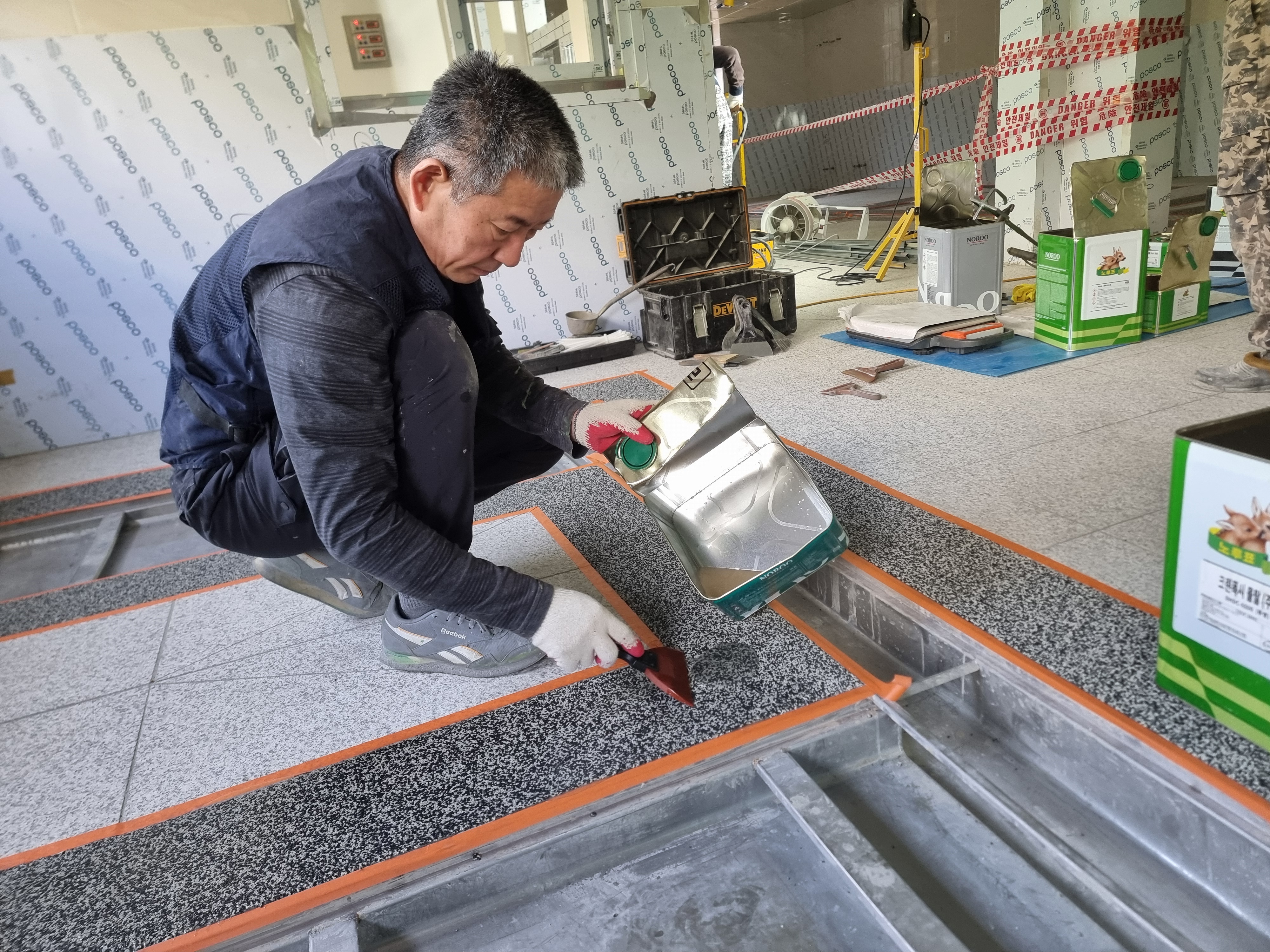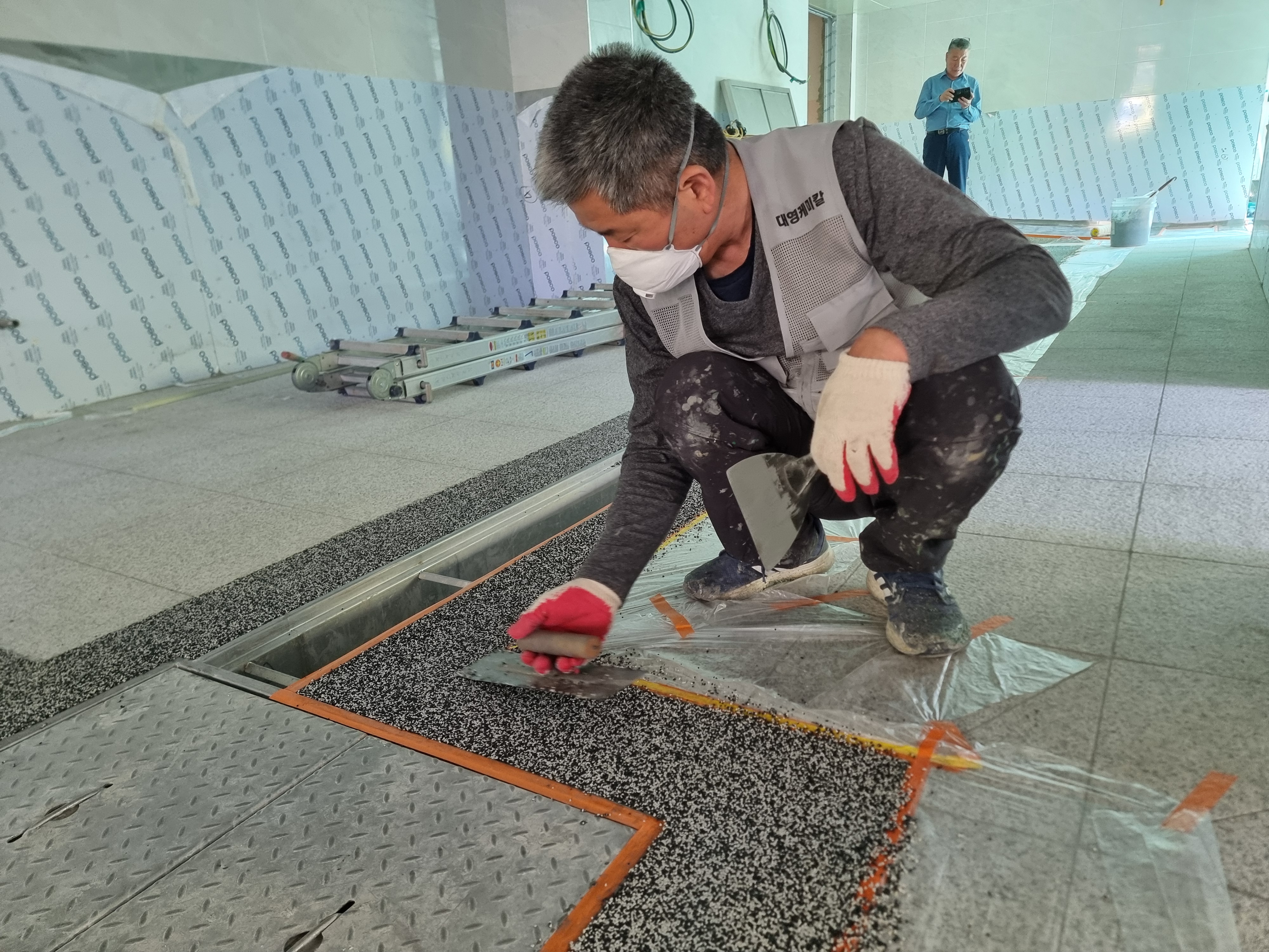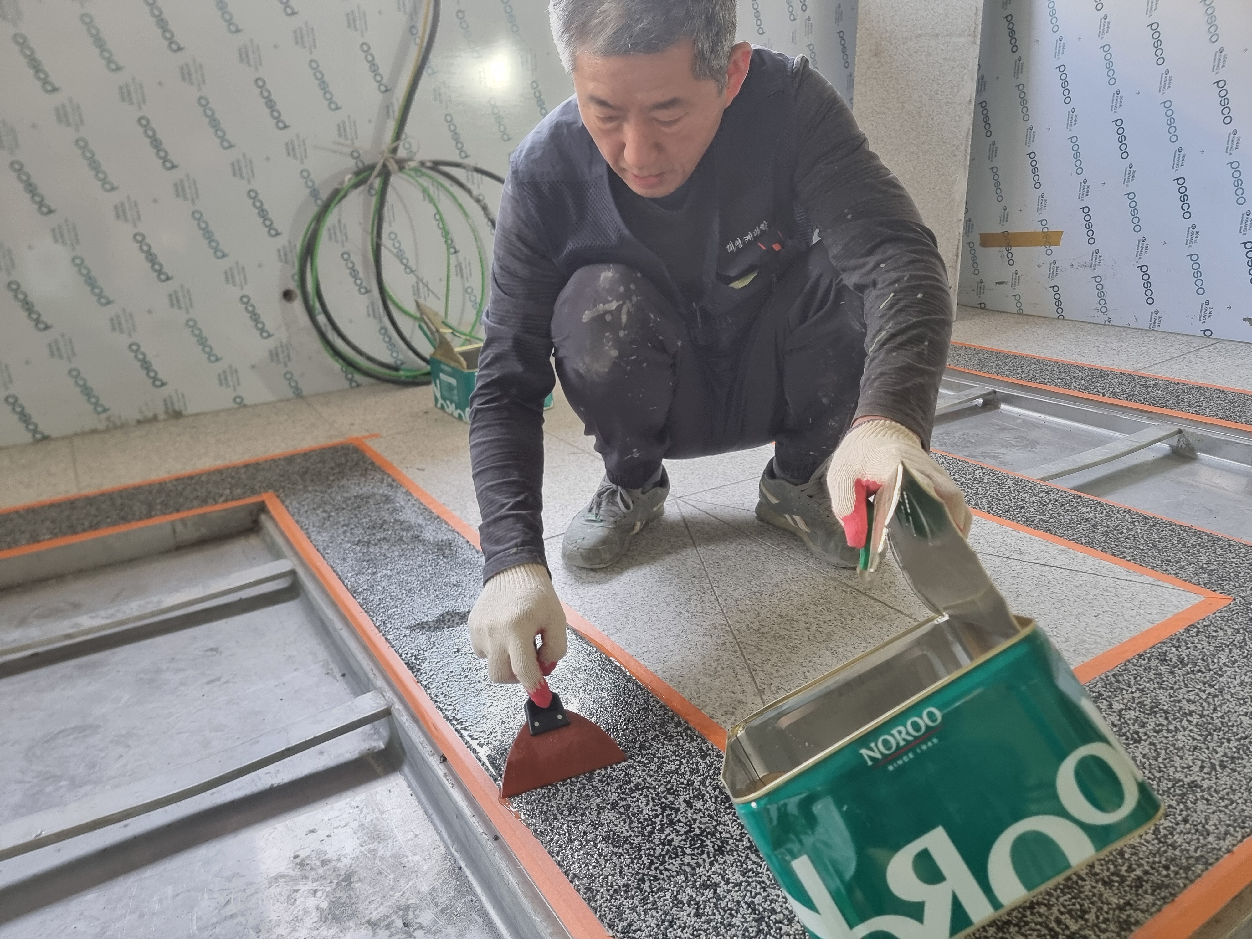 미끄럼 방지를 위하여 논슬립코팅을 추가 합니다. 노루표에서 제공하는 논슬립 파우더는 청소작업이 용이한 미세파우더를 사용합니다.