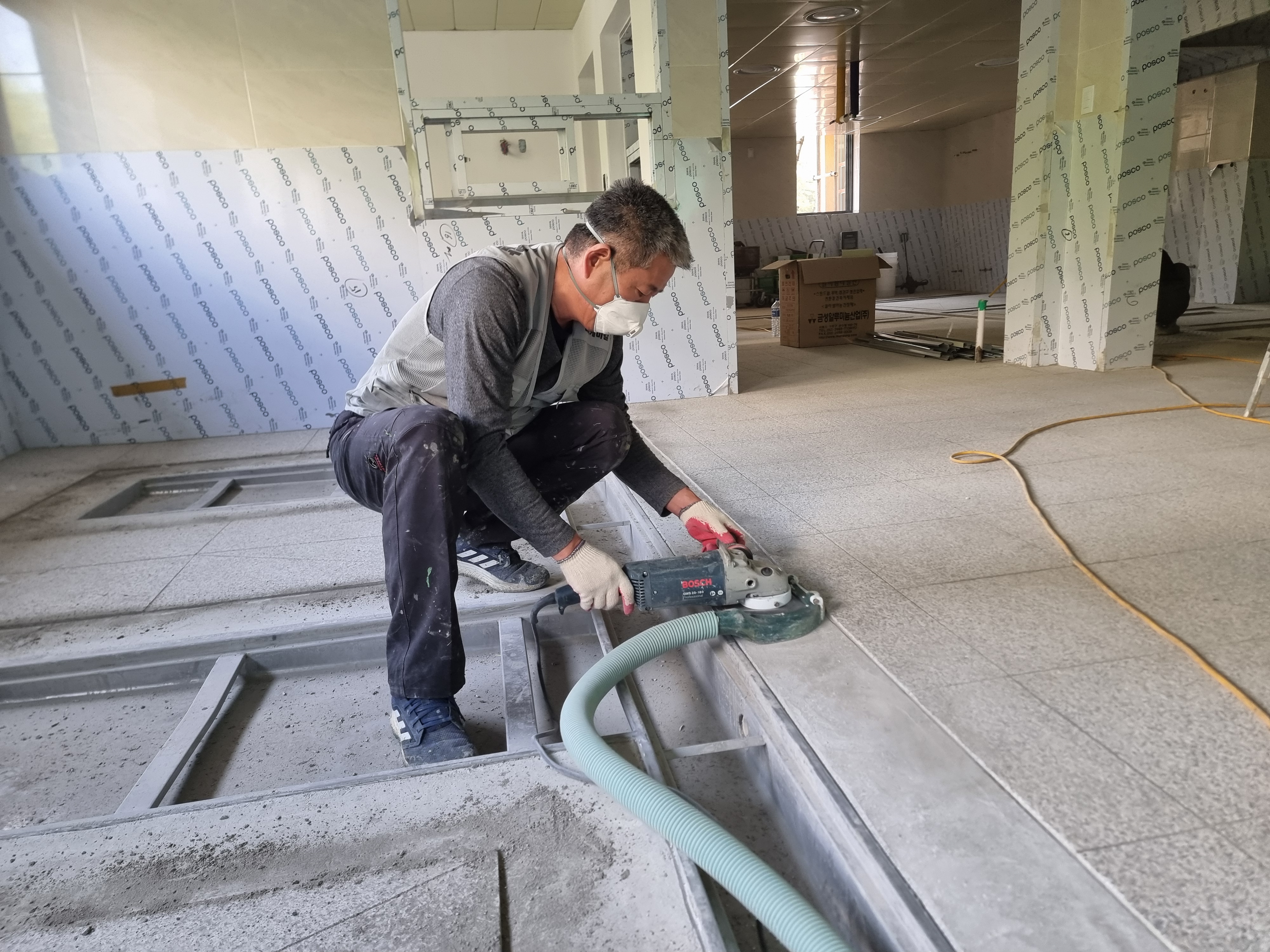 면처리시 집진기를 연결하여 분진발생 과 비산먼지 를 억재 할수 있습니다.