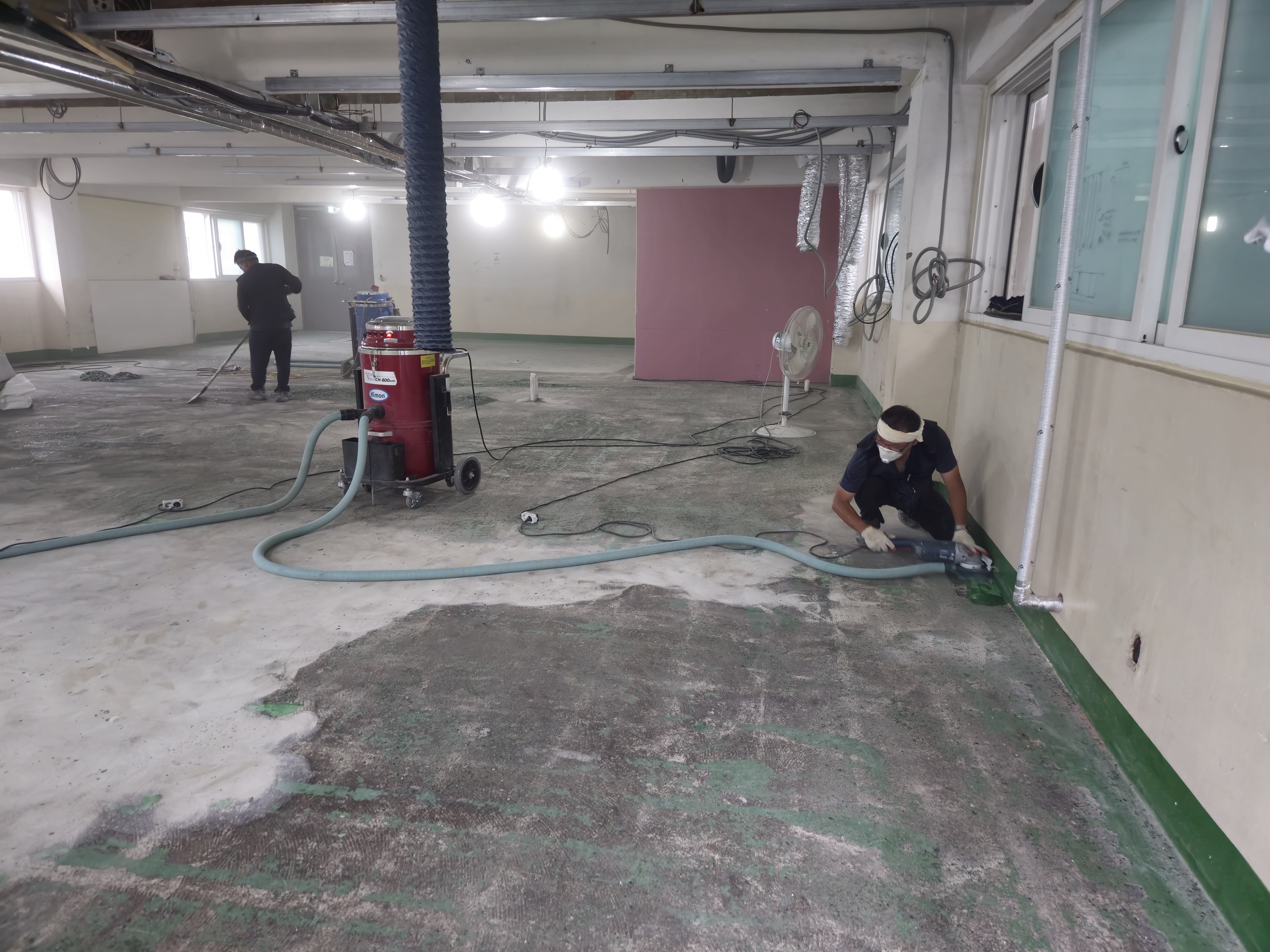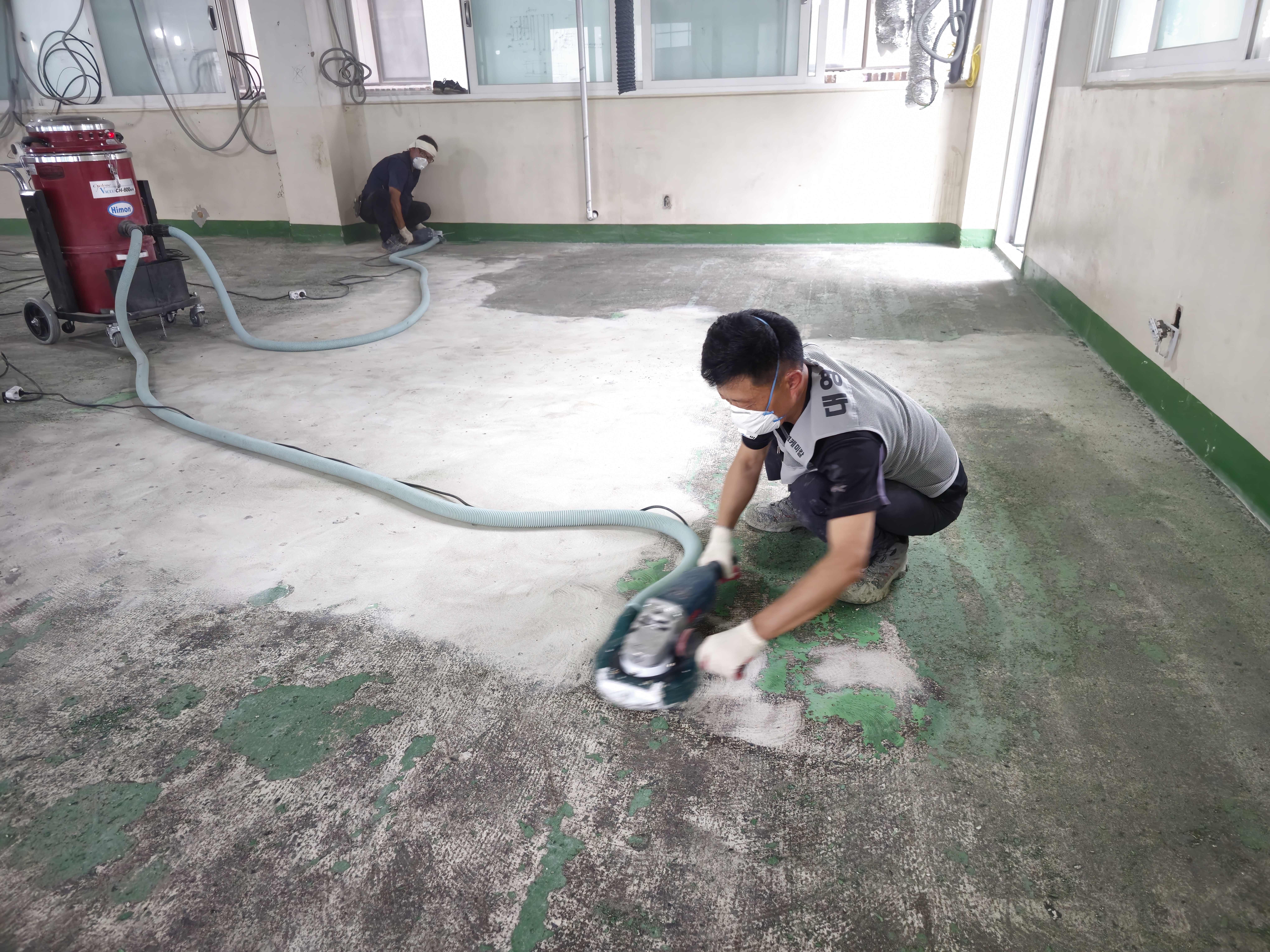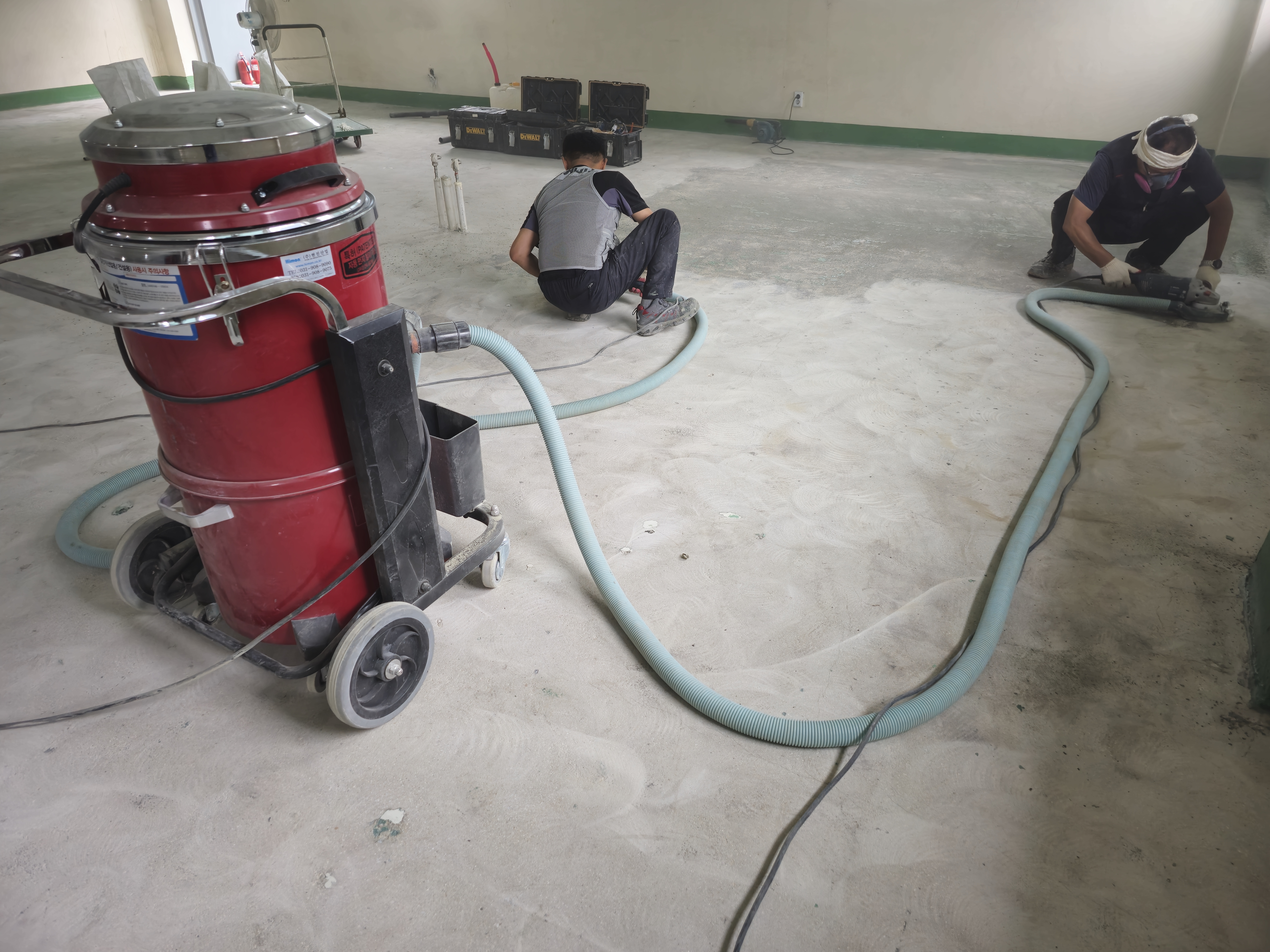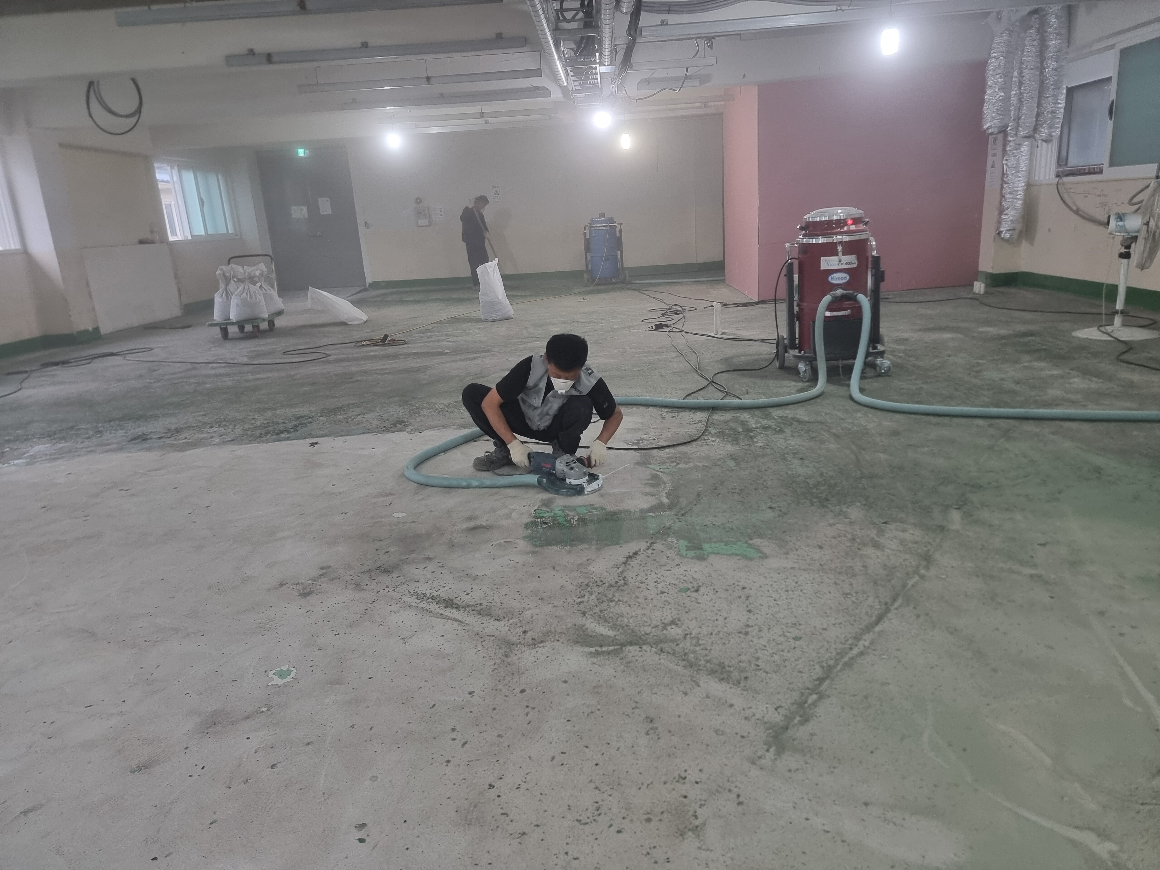 중도 1㎜ 시공후 단차나 표면의 이물질등을 정리 하기 위하여 연삭기를 이용하여 표면을 연마하십시오. 상재와의 접착력을 높여주며 깨끗한 마감 표면을 얻을수 있습니다.
