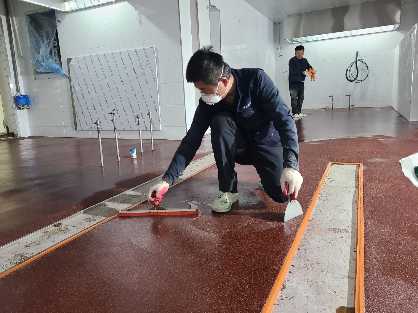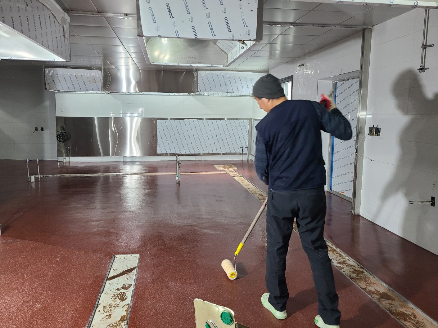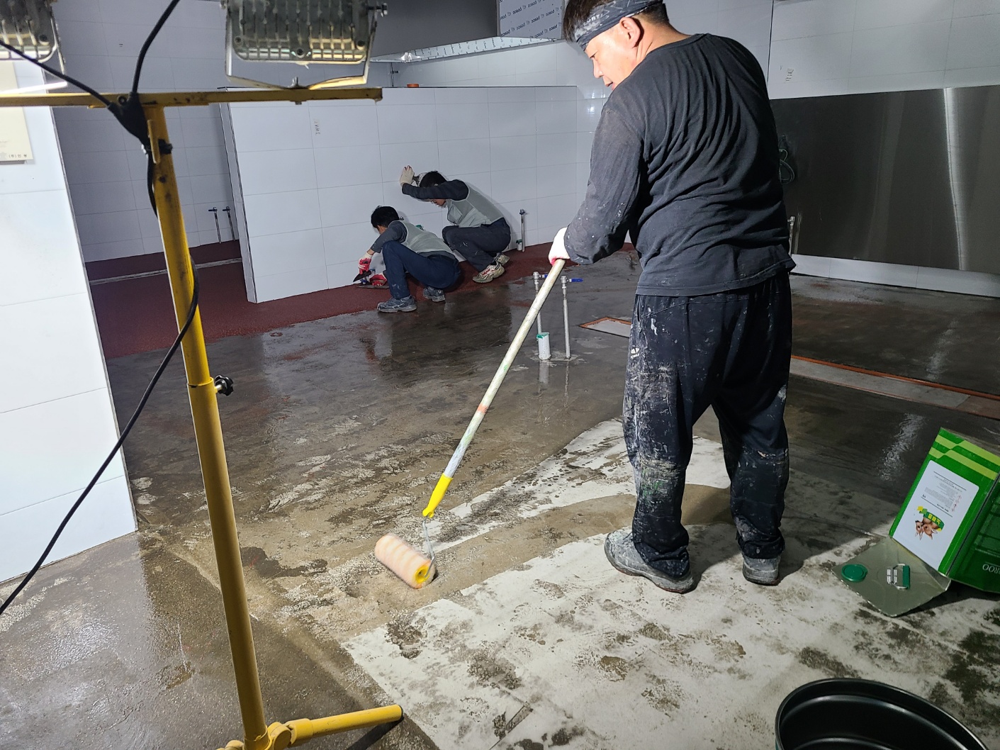 천룡골프장 신축주방 바닥재 레진몰탈 미장공사.