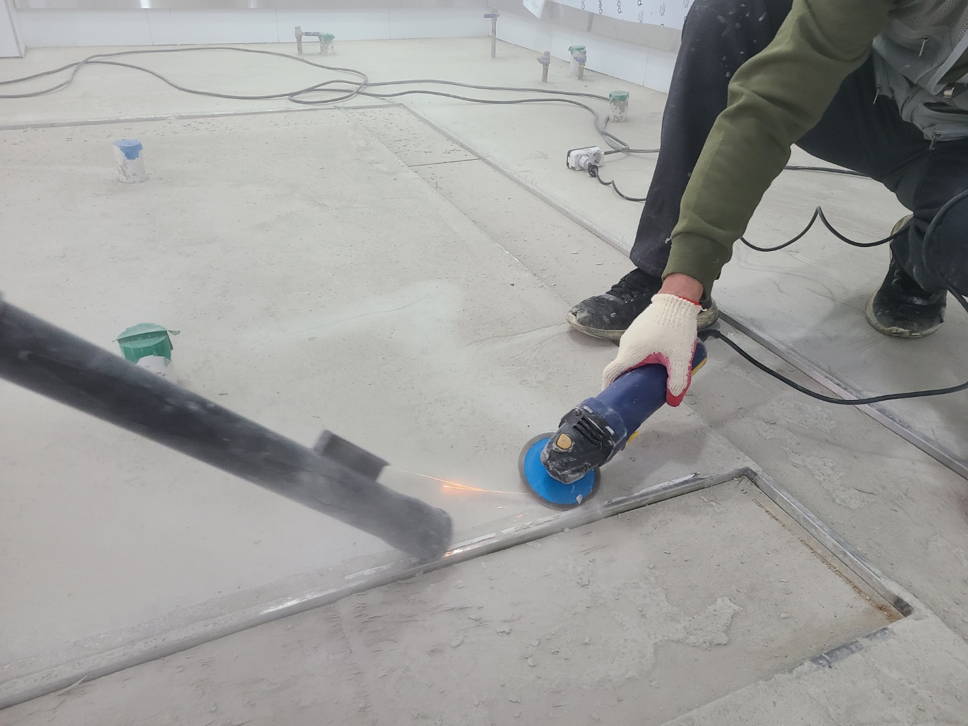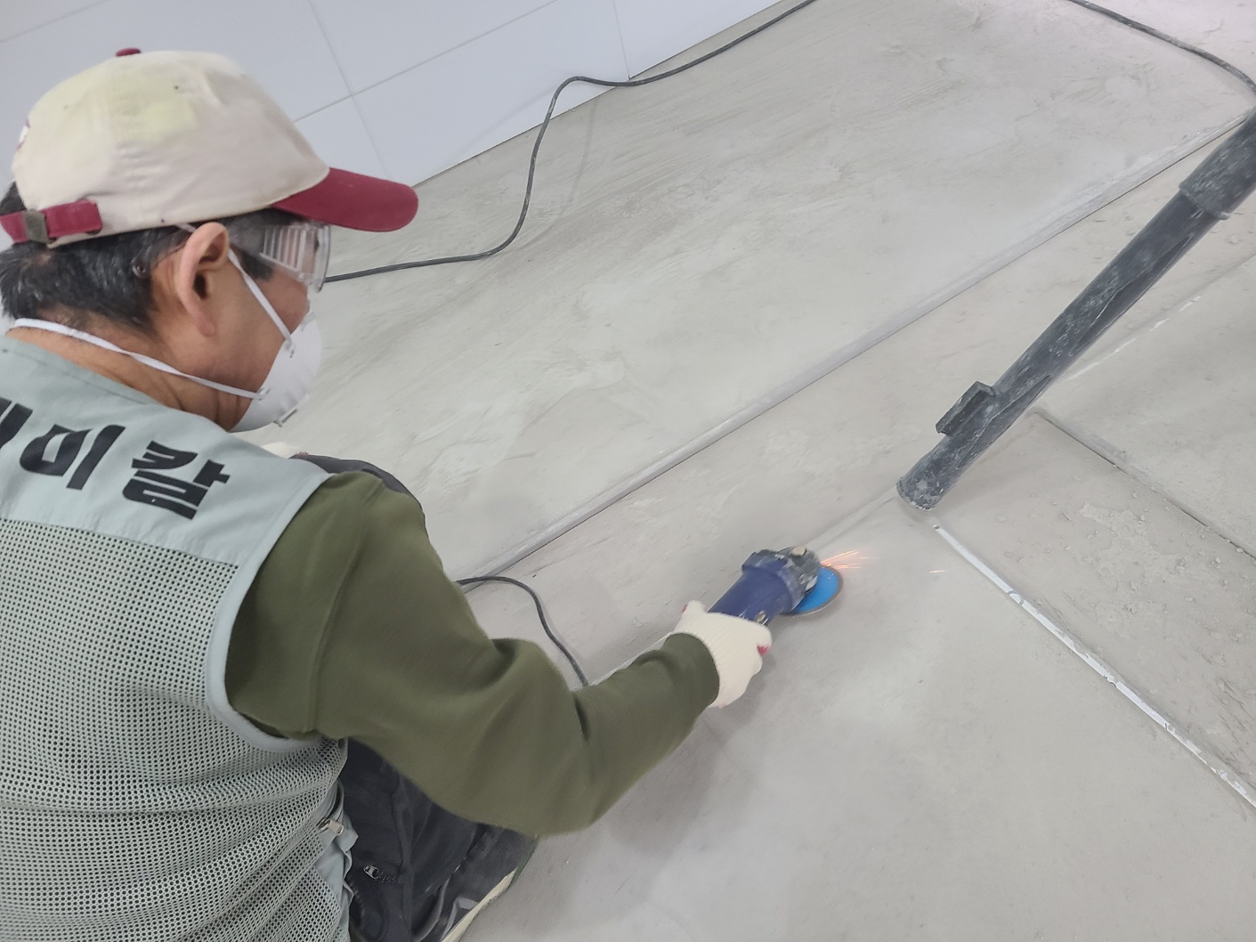 그라인더를 이용하여 표면의 오혐물질과 레이턴스를 제거 합니다.
