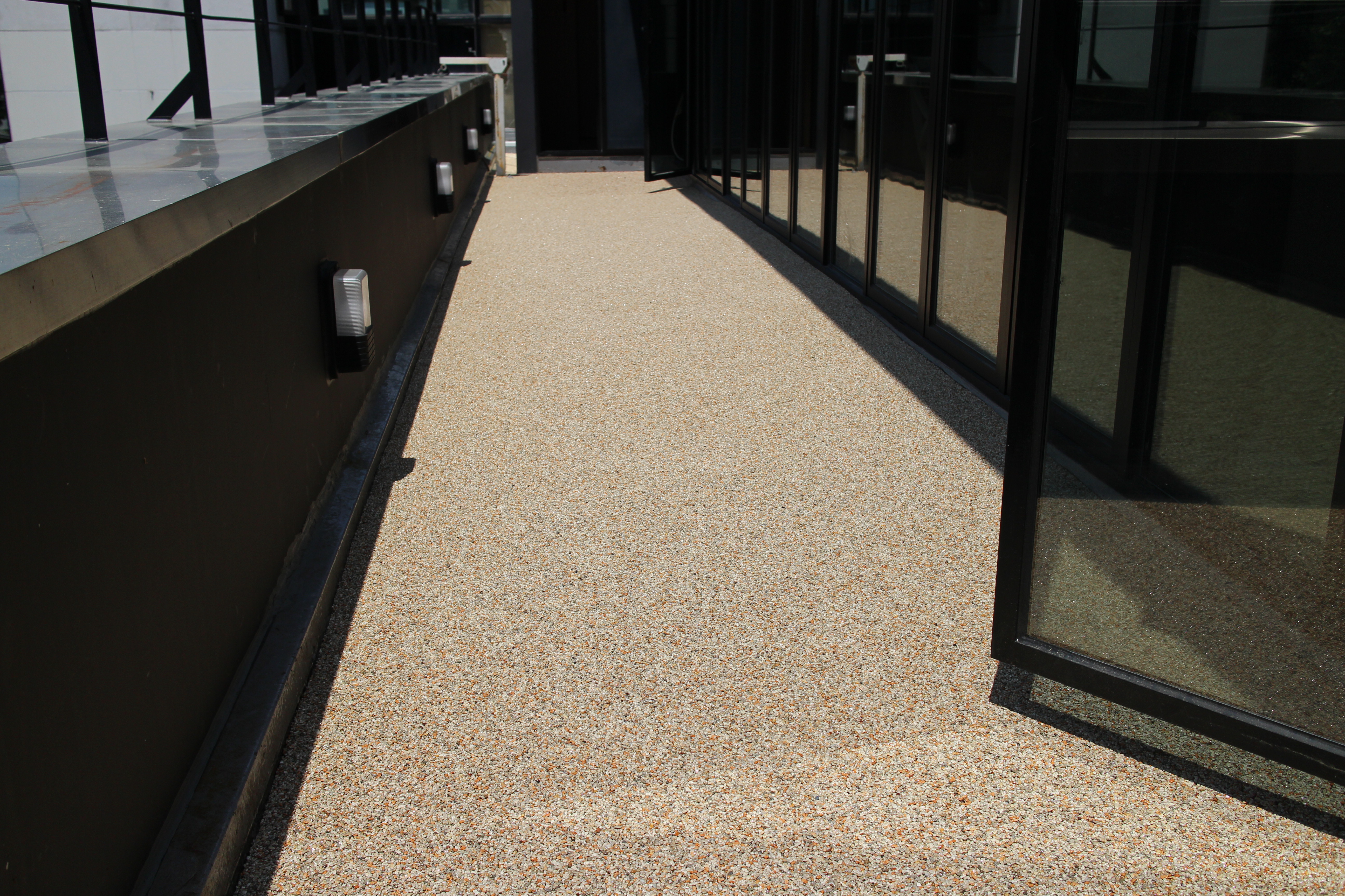 외부에 시공되는 콩자갈은 강한 자외선에 노출되어 황변이 올수 있습니다. 저황변타입의 예그리나플로어 를 사용하면 햇빛에 의한 탈색을 방지 할수 있습니다.