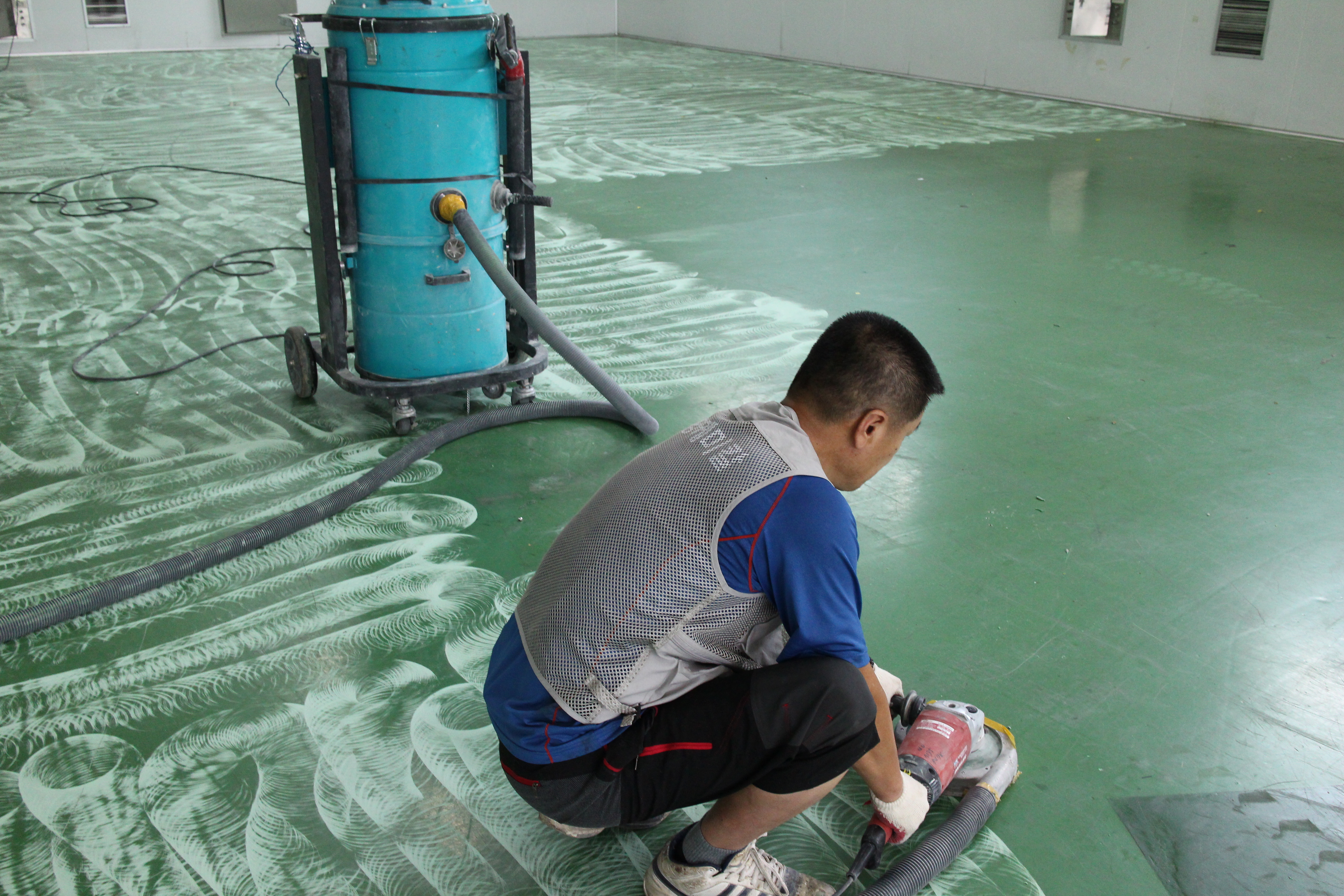 그라인더 바닥 표면처리 화면입니다 산업용 청소기로 그라인더 분진과 기타 이물질을 청소합니다.